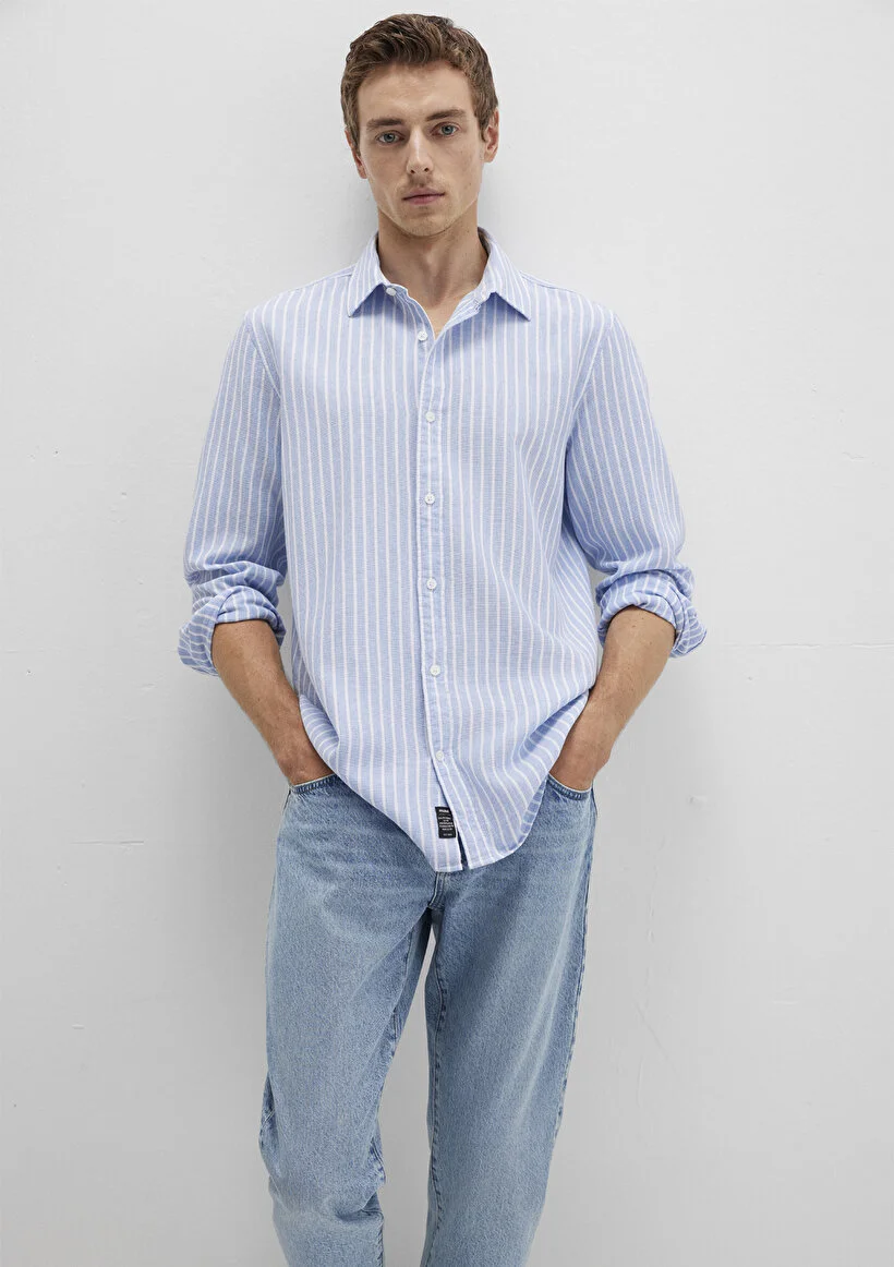 Erkek Mavi M0211693-90912 Çizgili Gömlek GML.ERK.617 M0211693-90912
