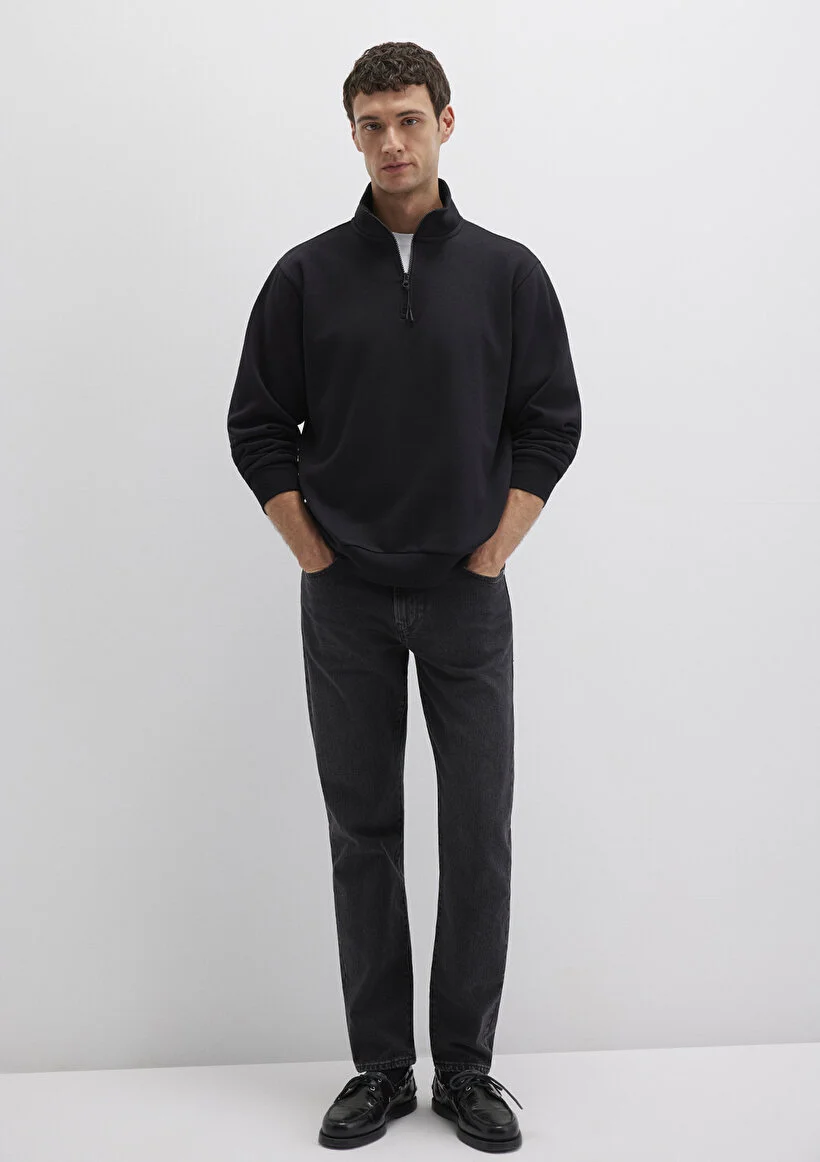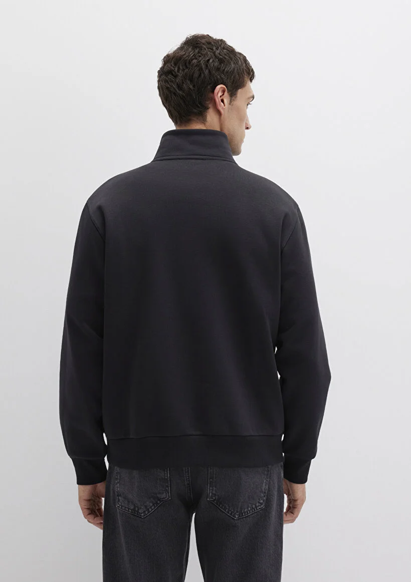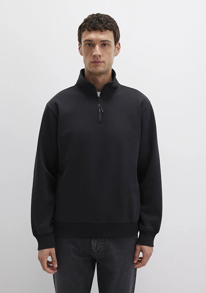 Erkek Siyah M0s10278-900 Yarım Fermuarlı Sweatshirt SWT.ERK.216 M0S10278-900