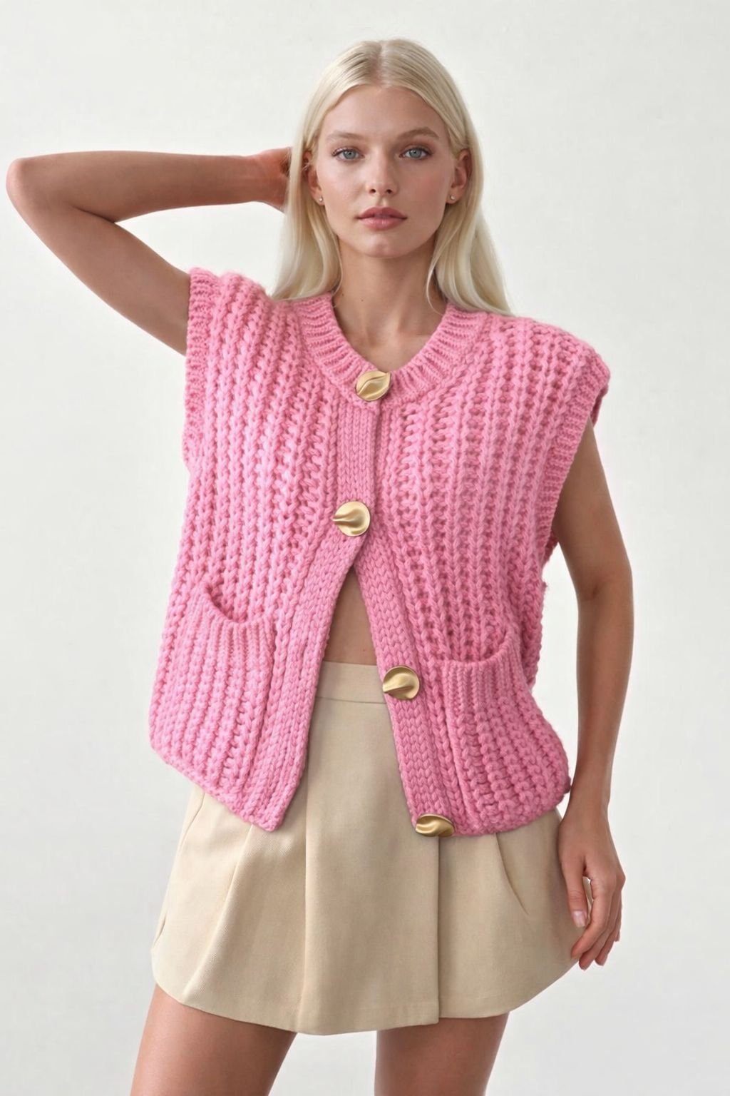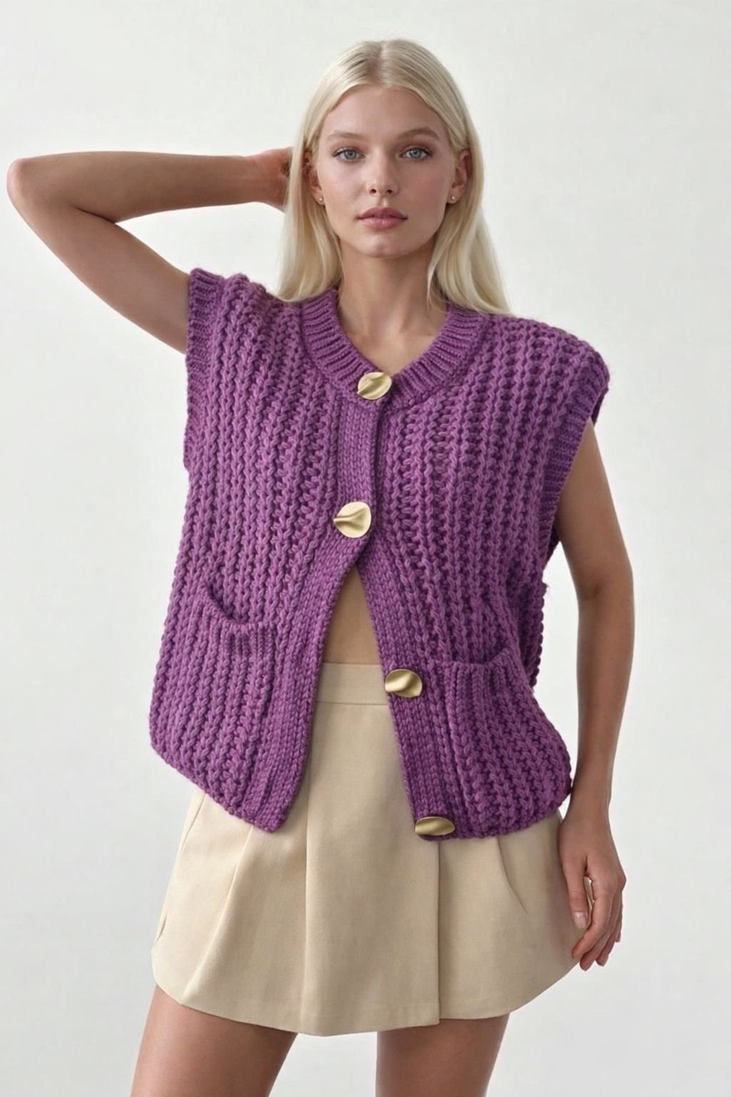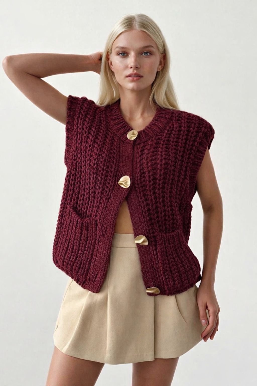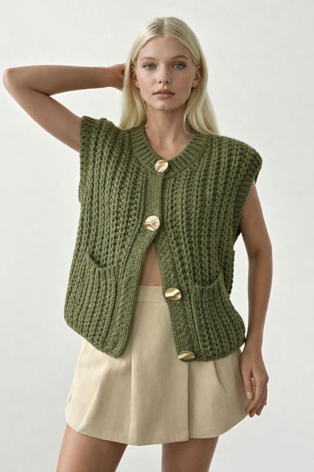 Kadın Krem 4899 Selanik Desen Yelek YLK.KD.0120 4899