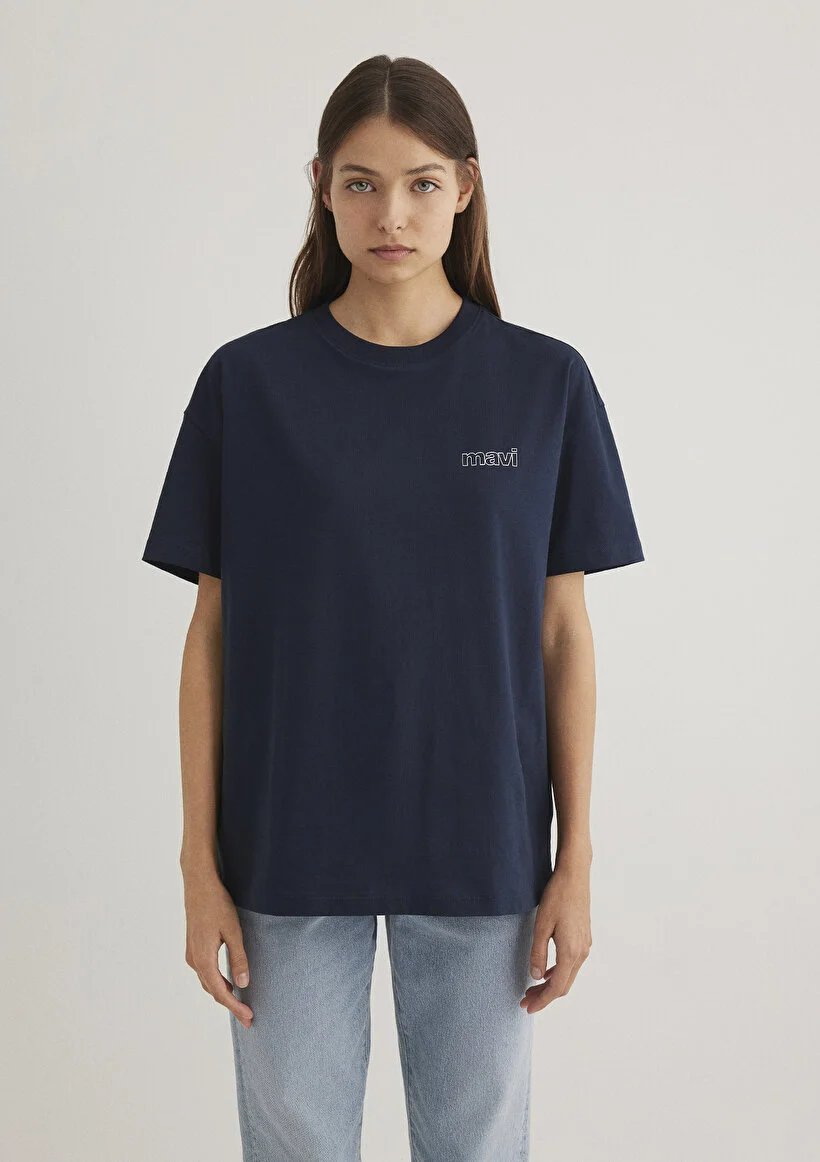 Kadın Lacivert M1611309-70490 Bisiklet Yaka T-Shirt TSH.KD.0554 M1611309-70490